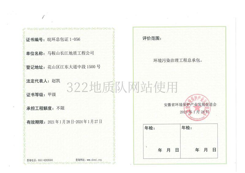 • 环境污染治理工程总承包证